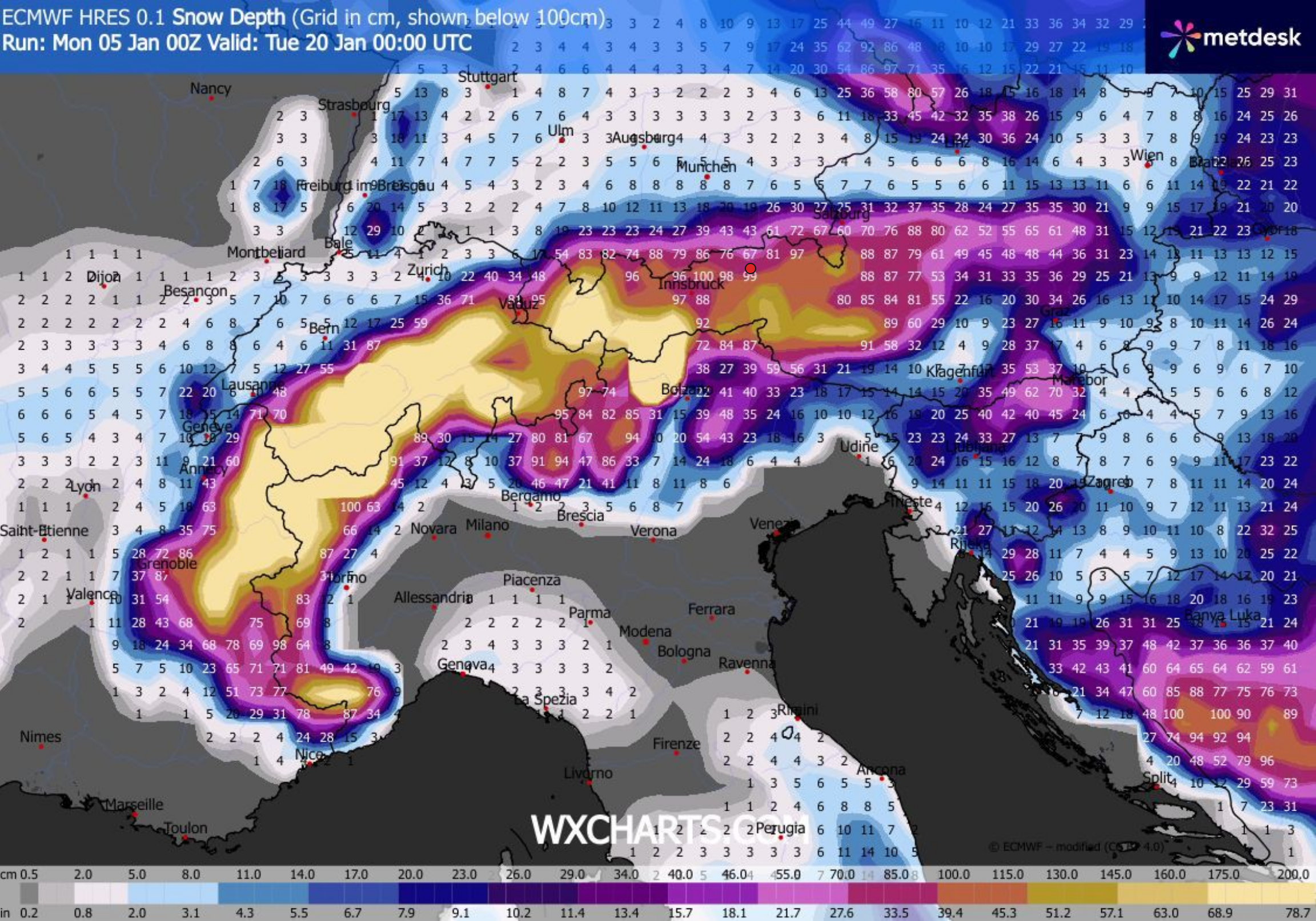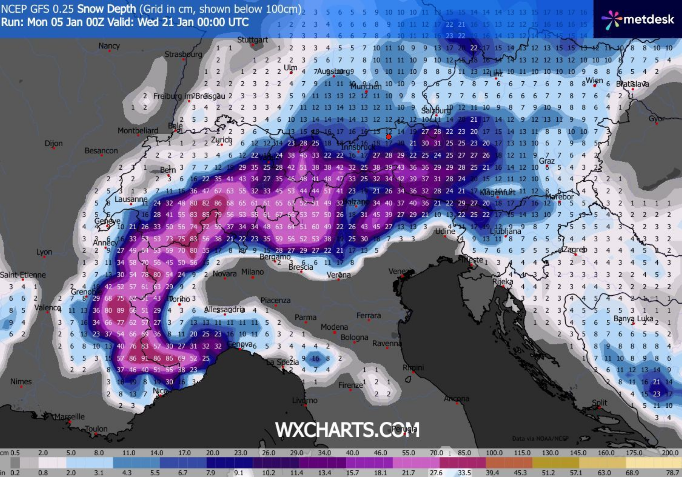 Die Schneehöhenkarten von GFS und ECMWF zeigen übereinstimmend: