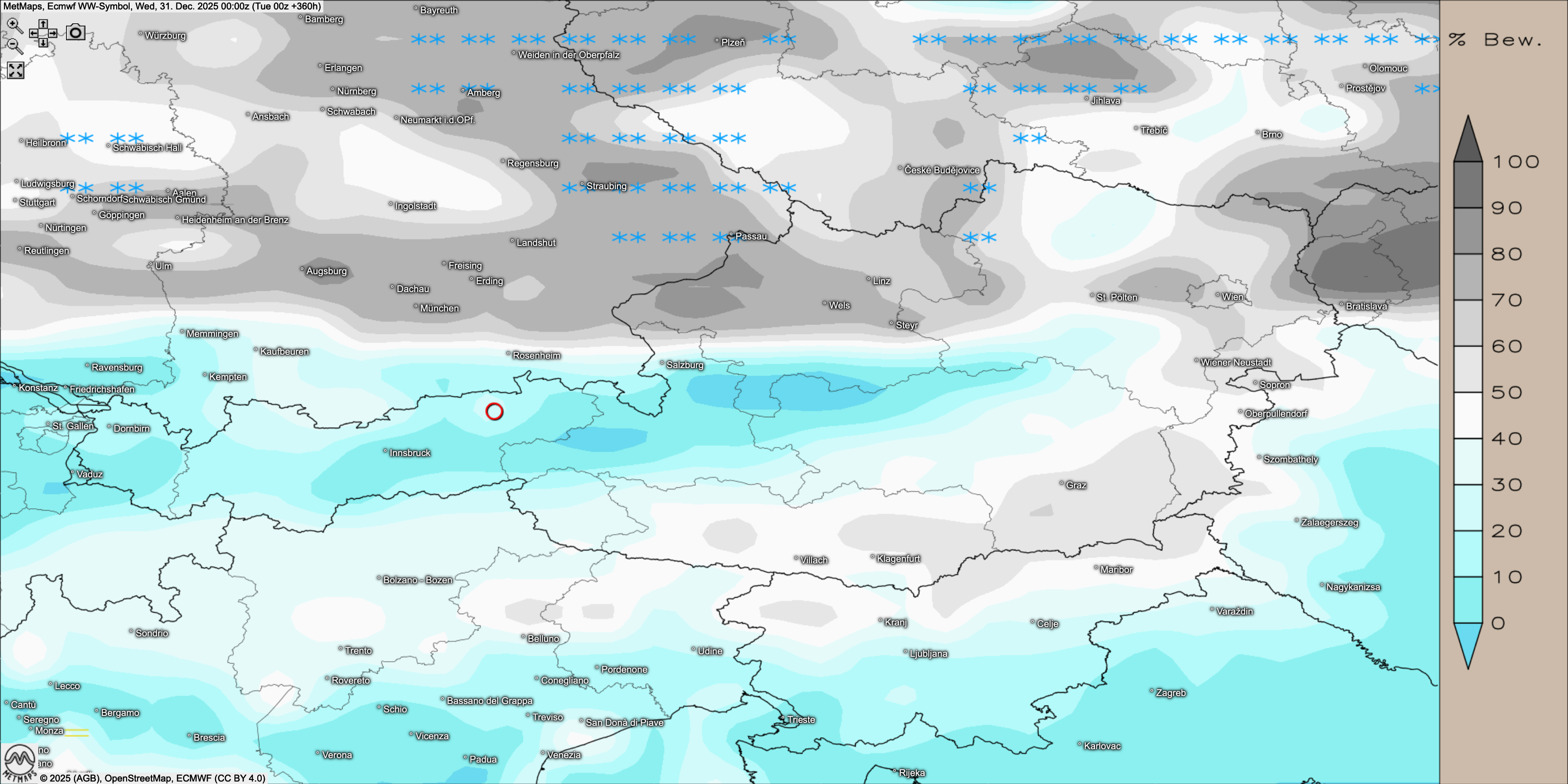 Die derzeitigen Berechnungen deuten darauf hin, dass es rund um den 31. Dezember in weiten Teilen Österreichs, besonders auch in Tirol deutlich winterlich kalt werden könnte. Keine rekordverdächtigen Extremwerte, aber ganz klar: