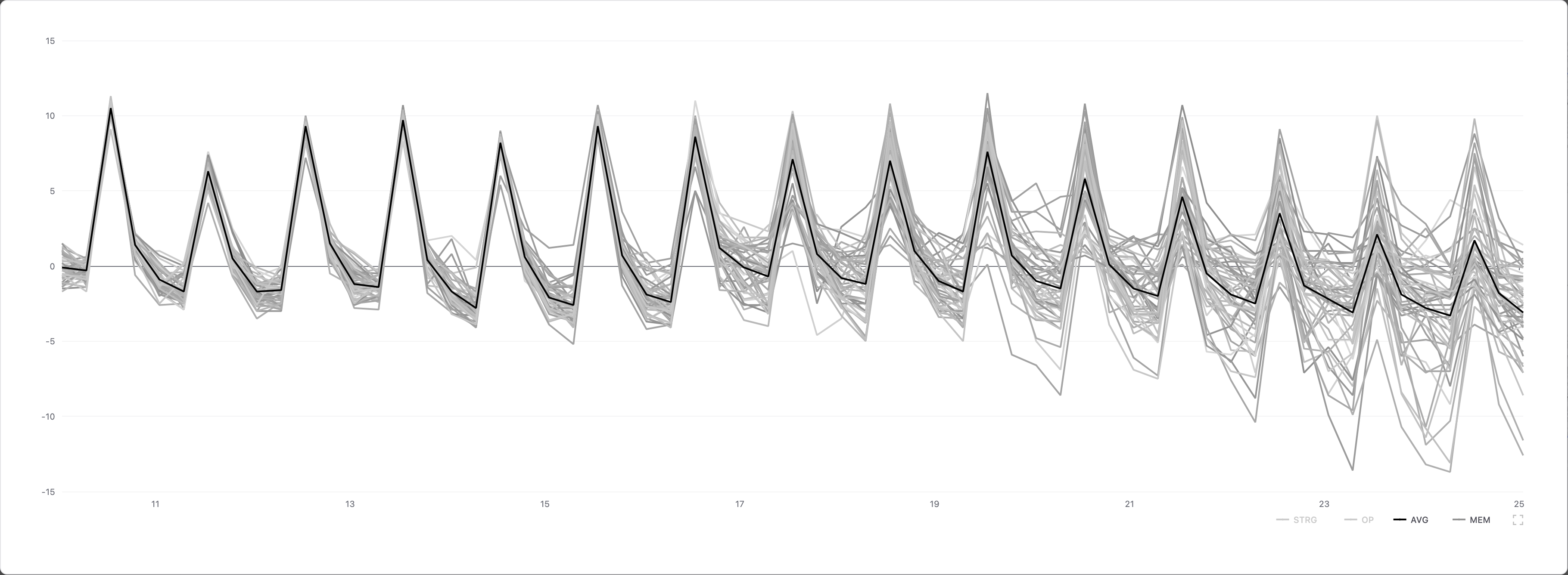 gleichzeitig sinkende Temperaturkurven bei einem Teil der Lösungen