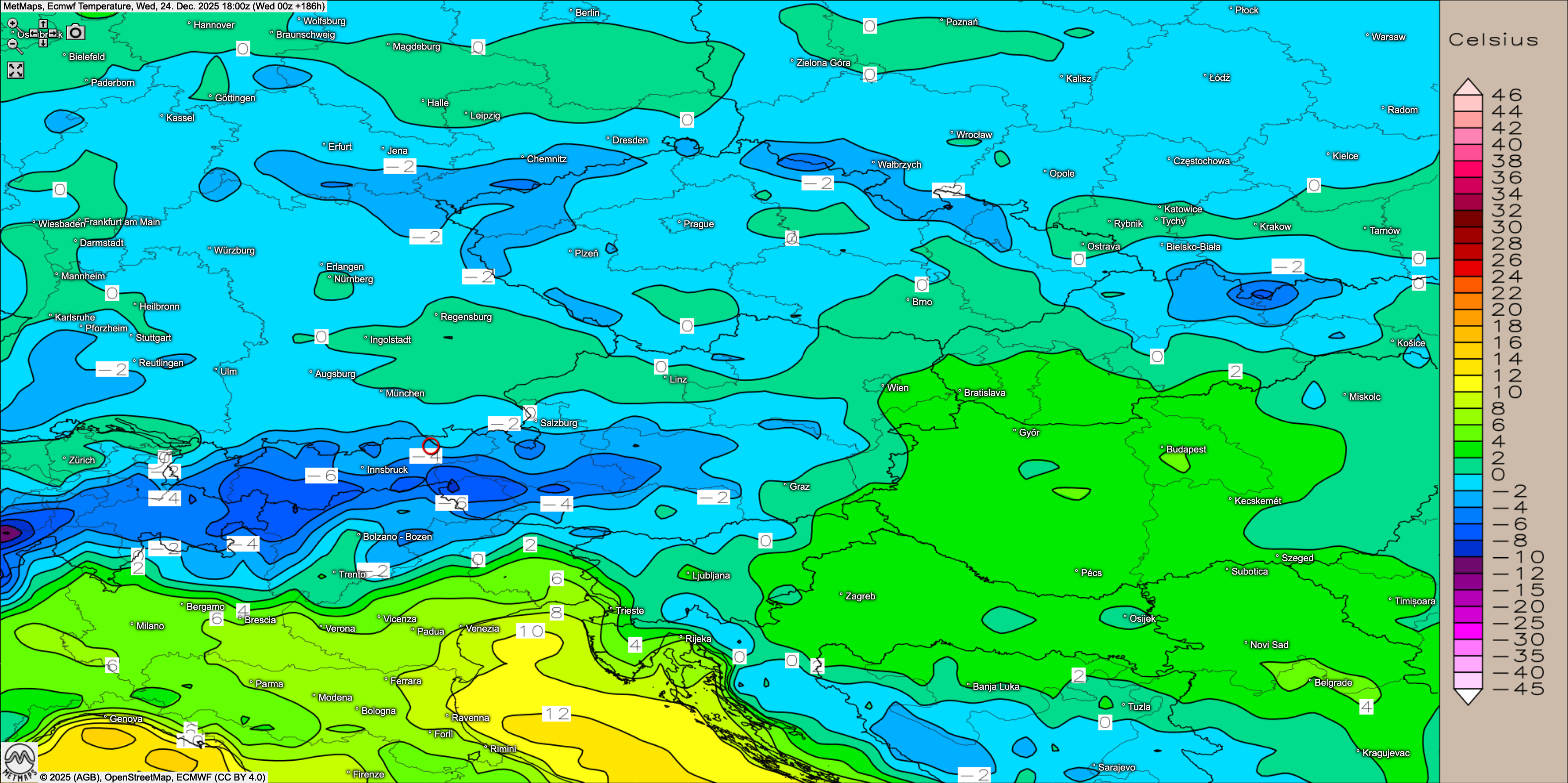 Auch der Stefanitag verläuft nach aktueller Modelllage eher ruhig und kalt. Inversionswetterlagen spielen weiterhin eine Rolle: